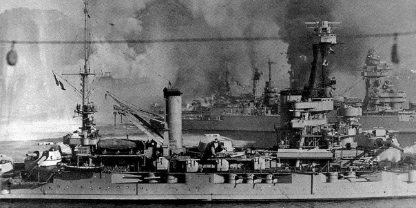 Последнюю башню главного калибра заклинило. Начался пожар на корме возле пороховых погребов. Линкор стал стремительно набирать воду. Чтобы спасти корабль, капитан выбросил его на берег.