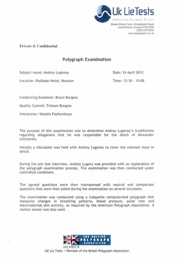 Депутат Госдумы Андрей Луговой заявил, что британские эксперты проверили на полиграфе в Москве его показания по делу о смерти экс-сотрудника ФСБ Александра Литвиненко и пришли к выводу, что Луговой не причастен к этому.