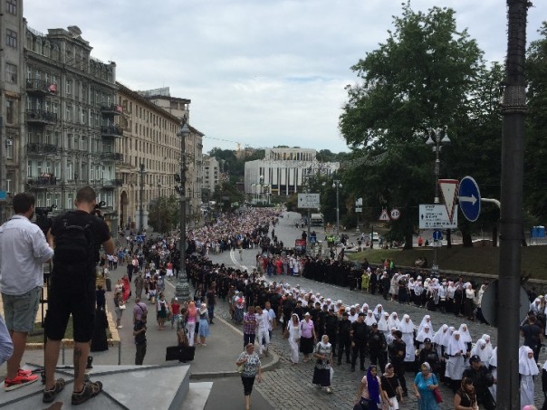 В этом году радикалы даже не смогли выйти из своей штаб-квартиры. Как сообщил в своем «Фейсбуке» лидер ОУН Николай Коханивский, полиция подогнала к зданию несколько автозаков и водомет, тем самым преградив выход. С самого утра в столице уже были перекрыты некоторые улицы, на окраинах, а позже и на близлежащих центральных улицах стояли большие автобусы, которые привезли паломников, причем многих из них доставляли сразу к Киево-Печерской лавре.