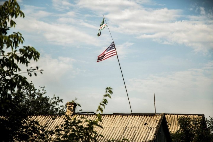 Просто одна из позиций украинской армии. Над ней два флага, святые для каждого украинца, видимо. Флаг США и флаг республики Ичкерия. Украинского флага нет, да он и не нужен уже так, чтоб сильно. Чужие правители, чужая история, чужие герои, чужие праздники. И чужая война, которую ведут украинцы, не гнушаясь ничьей помощью.