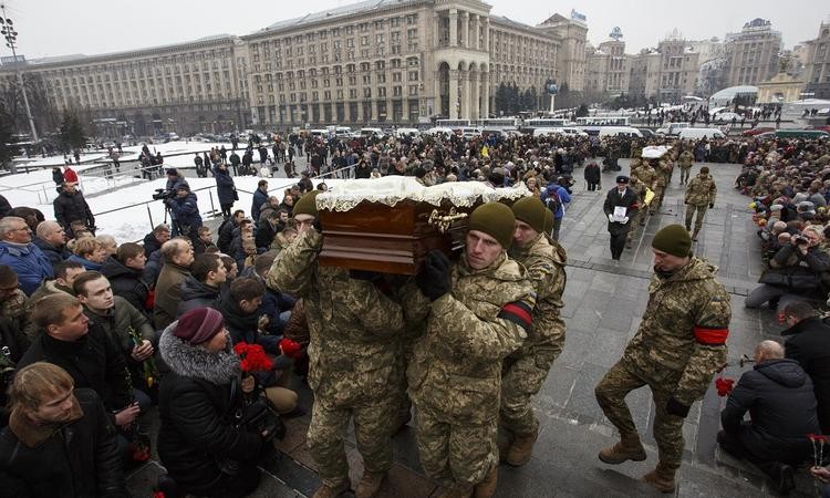 1 февраля в Киеве прошла церемония прощания с погибшими под Авдеевкой украинскими военнослужащими из 72-й бригады ВСУ. Отпевали на майдане с почестями только семерых из нескольких десятков военнослужащих, которых привезут домой в цинковых гробах.
