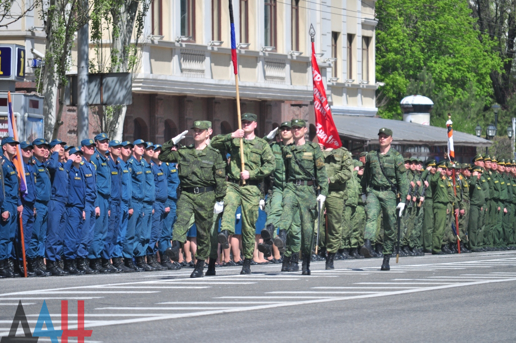 Репетиция Парада Победы прошла сегодня на площади Ленина в центре столицы ДНР. Количество участников составило 1088 человек