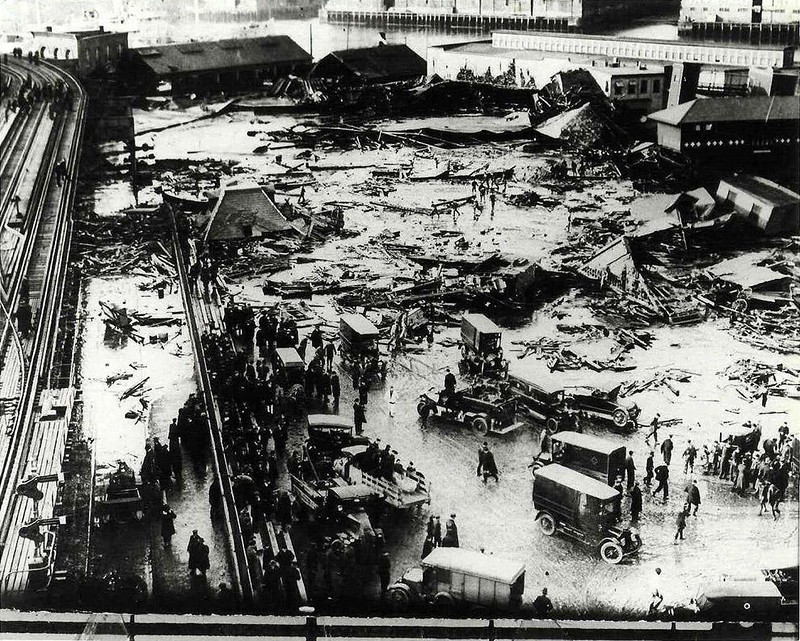 Все наверное знают про «Бостонское чаепитие», а оказывается там был еще и сахарный потоп или как его еще называют «паточный потоп». 15 января 1919 года произошла одна из самых странных катастроф в истории. В Бостоне взорвался гигантский резервуар с мелассой - чёрной патокой, которая у нас в основном используется как составная часть сельско-хозяйственных кормов, а в США и Канаде используется и в кулинарии в качестве популярного сиропа.