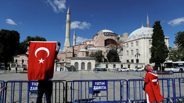 Анкара обещает сохранить доступ в храм Святой Софии для христиан и христианские мозаики IX-X веков, сообщает телеканал CNN Turk. Несколько часов назад один из крупнейших в мире архитектурных памятников христианства и символ золотого века Византии поменял статус с музея на мечеть. Его громкоговорители уже анонсируют расписание намазов на 11 июля.