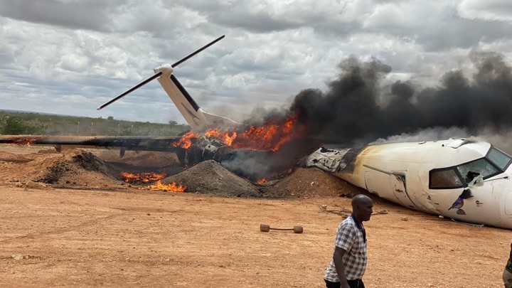 Самолет кенийской авиакомпании Bluebird Aviation, перевозивший гуманитарную помощь по заказу ООН, разбился при посадке в аэропорту Беледуэйне в центральной части Сомали. Место происшествия спустя несколько минут после крушения лайнера сняли на видео.