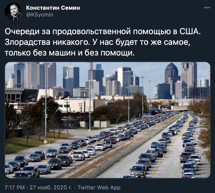 Сколько Костя предрекал кризис в России, сколько мечтал о революции, но первыми треснули его любимые США. Но он не отчаивается и мечтает дальше, в России снова будет хуже.