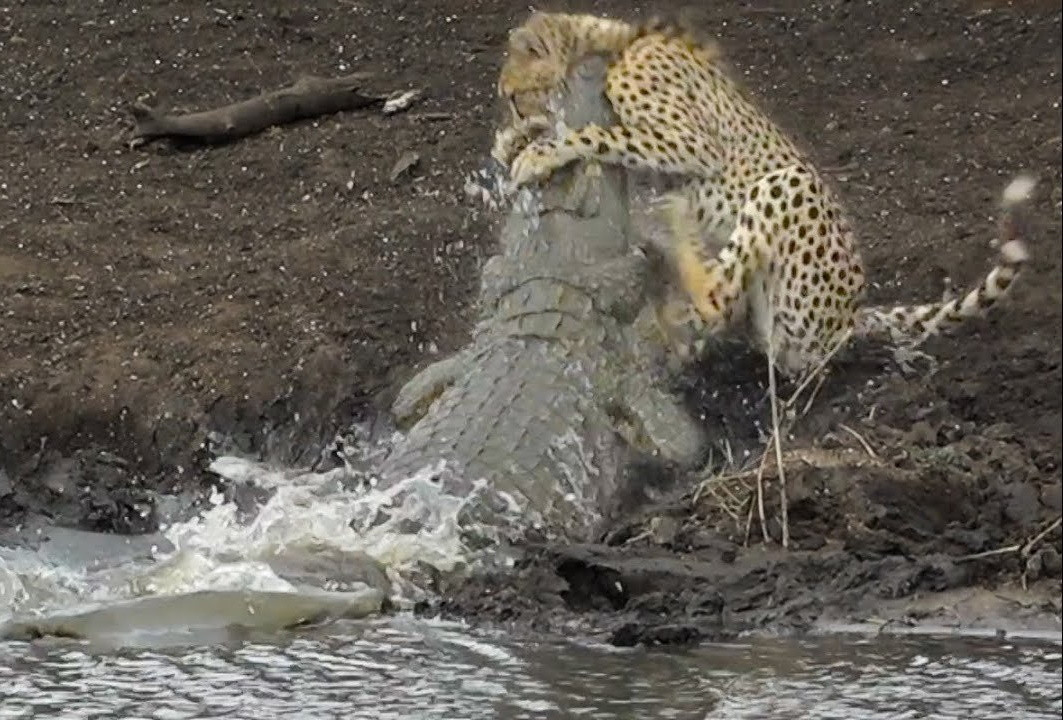 Молодой гепард спустился к водопою и принялся аккуратно лакать воду. Он не заметил, что в водоеме скрылся в засаде один из самых опасных африканских суперхищников — большой крокодил...