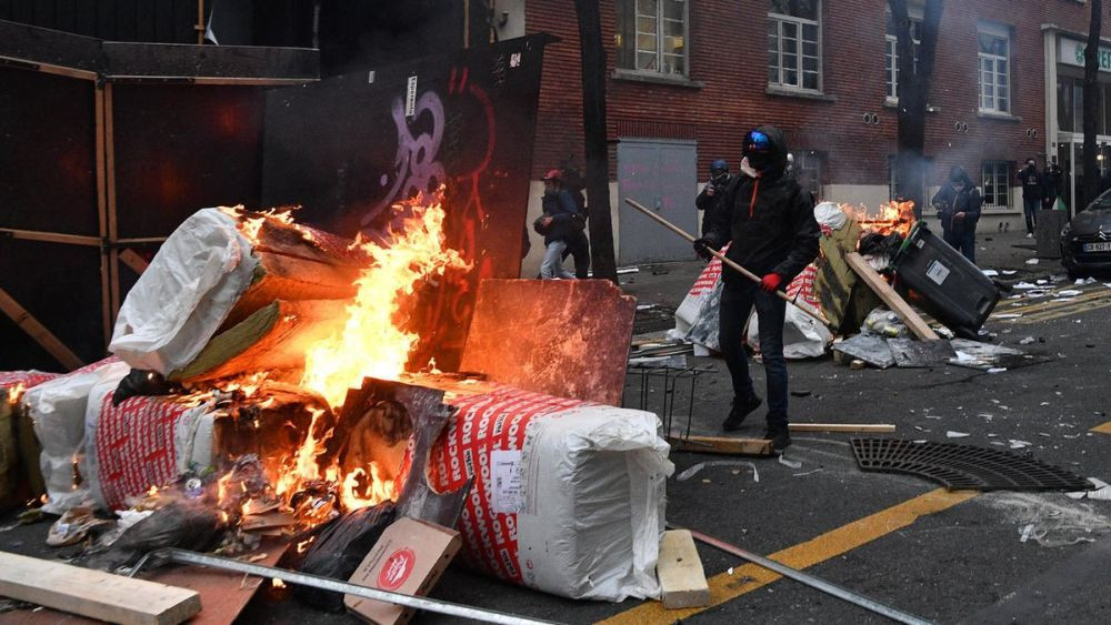 Мирная демонстрация переросла в погромы после того, как к ней присоединилось около 500 громил в масках и капюшонах. Они били витрины, поджигали автомобили, строили баррикады, бросали в полицейских булыжники. Вызовы в области здравоохранения и безопасности переплелись друг с другом. Они превратили Францию в хрупкое судёнышко