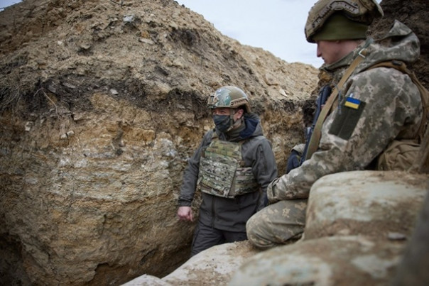 Глава делегации США, атташе по вопросам армии и обороны полковник Бриттани Стюарт посетила подразделения вооруженных сил Украины на линии соприкосновения в Донбассе, на ее форме был шеврон одной из бригад, на котором изображен череп и надпись "Украина или смерть".