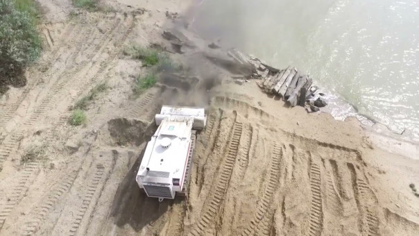 Саперы Центра "Лидер" МЧС России разминировали береговую зону в районе Мариуполя с помощью специальной роботизированной техники.