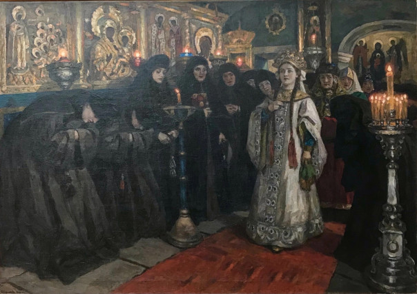 Мы все знаем самую первую картину Сурикова на исторический сюжет. Утро стрелецкой казни. А какая была последней? Вот эта. "Посещение царевной женского монастыря" (1912, Третьяковская галерея).