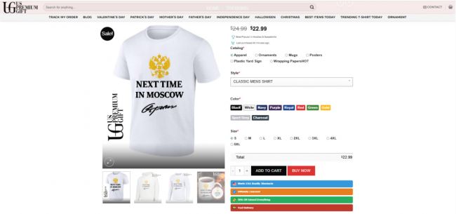 Американские маркетплейсы начали продавать футболки и свитшоты с цитатой президента России Владимира Путина. Соответствующие товары найдены в трех онлайн-магазинах, работающих в США.