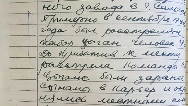 "Карьеры кирпичного завода №1 были местом, где совершались эти злодеяния. Фашисты ежедневно привозили сюда на машинах группы граждан, нередко доходившие до более чем 100 человек, здесь их расстреливали и сбрасывали в котлован. Таких котлованов, наполненных трупами расстрелянных, насчитывается до 30", - указывалось в документе. Схема кирпичного завода с указанием мест захоронений убитых, составленная на основе показаний свидетелей в КГБ СССР в 1963 году, тоже рассекречена сейчас.