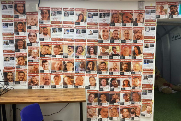 Место проведения музыкального фестиваля «Нова», атакованного ХАМАС 7 октября 2023. Табличка Максима Харкина, уроженца Донецка, всё еще удерживаемого в плену в Газе