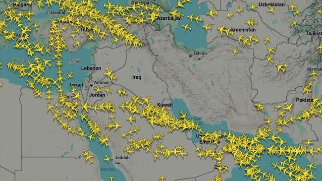 Воздушное пространство над Ближним Востоком прямо сейчас.