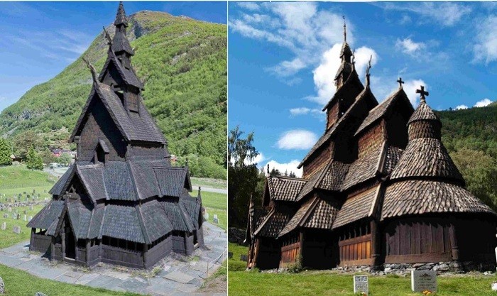 Уникальным памятником зодчества древних мастеров можно назвать деревянную каркасную церковь (ставкирка) в Боргунде (Норвегия). Она была построена в период между 1180-1200 годами. В XII веке христианство в Скандинавии еще только зарождалось, поэтому рядом с крестами на стенах ставкирки можно обнаружить вырезанные руны, изображения драконов. Вот уже 9 столетий деревянная церковь в Боргунде не меняет свой первоначальный облик.