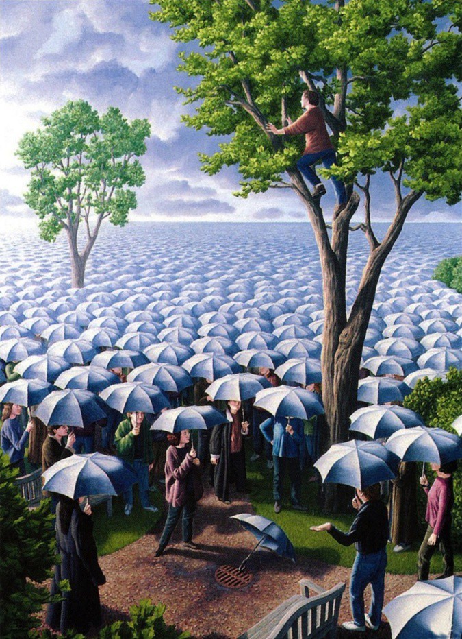 Сюрреализм и магический реализм — так можно назвать стиль, в котором рисует канадский художник Роб Гонсалвес (Rob Gonsalves). Он взял в руки кисточку в 12 лет и больше всего полюбил изображать архитектуру и работать с перспективой. В своих потрясающих картинах-иллюзиях Роб объединяет разные миры, которые, перетекая друг в друга, создают волшебные метаморфозы реальности. Так художник говорит нам, что всё в мире взаимосвязано.