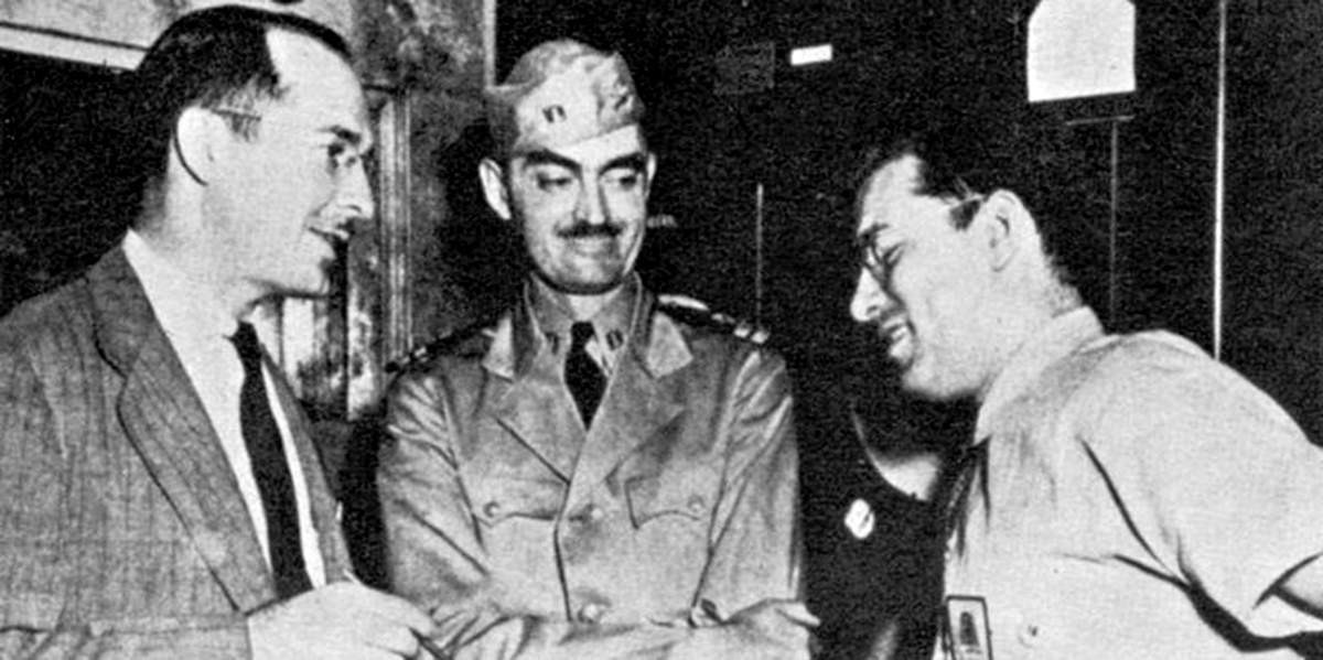 Слева направо - Хайнлайн, де Камп и Азимов, 1944 год