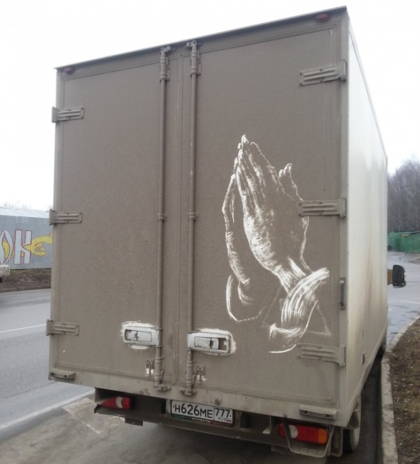 Московский художник увидел в слоях грязи, покрывающих автомобили, чистое полотно — и принялся создавать на нем удивительные картины.