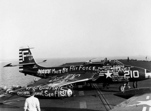Технически, то, что сделали с этим истребителем «Баньши» палубные авиатехники, ноуз-артом, конечно, не является. Но раз ныне даже граффити считается изобразительным искусством, почему бы и нам не расширить слегка рамки терминологии? Тем более, случай (отнюдь не единичный!) интересный.