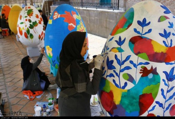 Раскрашивать яйца в Тегеране приглашают профессиональных художников.
