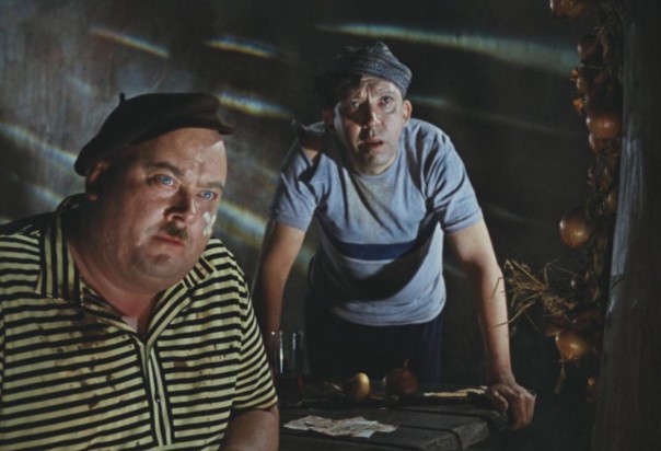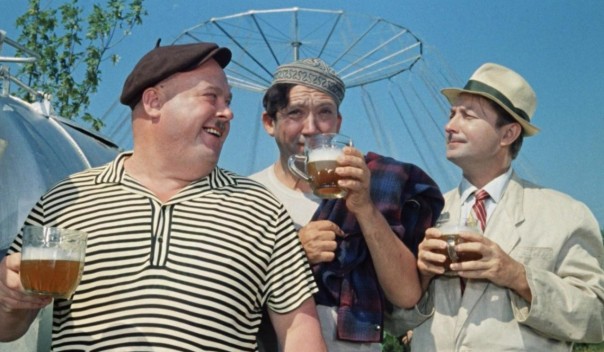 Георгий Вицин был принципиальным противником алкоголя, поэтому не пил ни шампанского, ни вина, ни коньяка, ни аперитива. В сцене, где троица пьёт пиво возле бочки, он попросил налить ему в кружку воды с сиропом шиповника. Однако в кадре это всё смотрелось как халтура. Юрий Никулин предложил бросить в кружку ваты, чтобы сымитировать пену, но и это оказалось не самой лучшей идеей. Наконец, Вицин пошёл навстречу и согласился выпить кружку пива в кадре. Это был первый и последний раз, когда он употребил алкоголь — как в жизни, так и на съёмочной площадке.