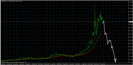 В декабре 2015 в момент взятия Киева нефть упадет до 30, а доллар будет 120 к рублю. Евро упадет до 0.8 евро за бакс. Смотрите прогноз Саксобанка.