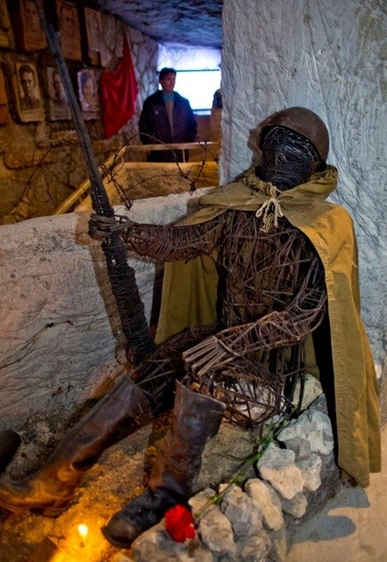 Чтобы снизить потери при длительных газовых атаках, в дальних штольнях люди строили газоубежища. Большие проходы заделывали обрезками камня бута, оставляя только пространство, чтобы там смог боком пройти человек. Оставшиеся части коридоров завешивали любыми тканями, одеялами, фуфайками, плащ-палатками, создавая какое-то подобие фильтра.