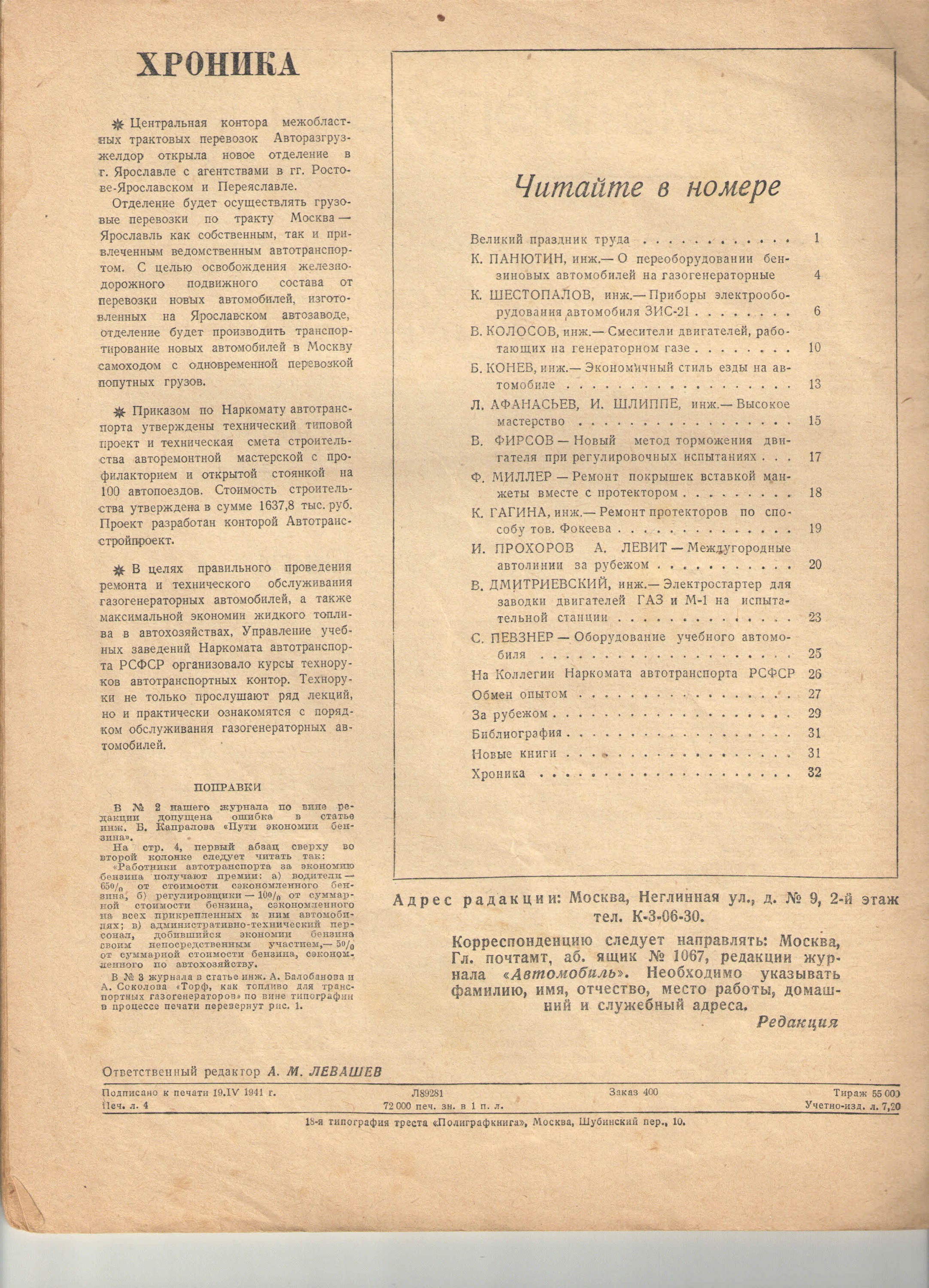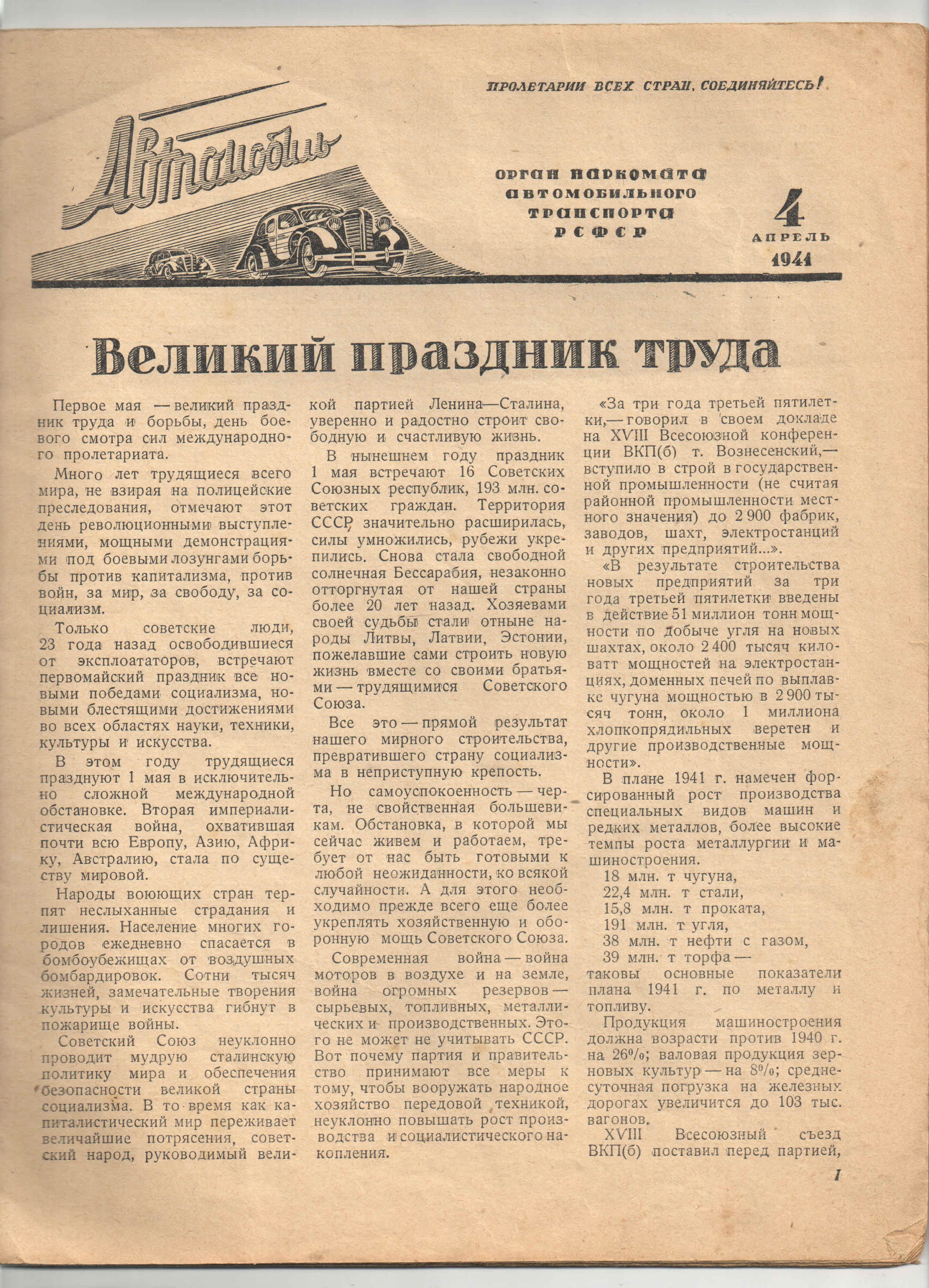 Наша общая память. Журнал "Автомобиль" за апрель 1941 года