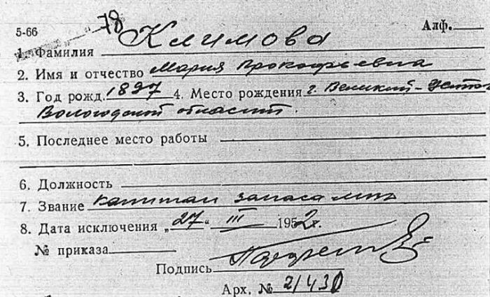 Учетная карточка Марии Климовой.