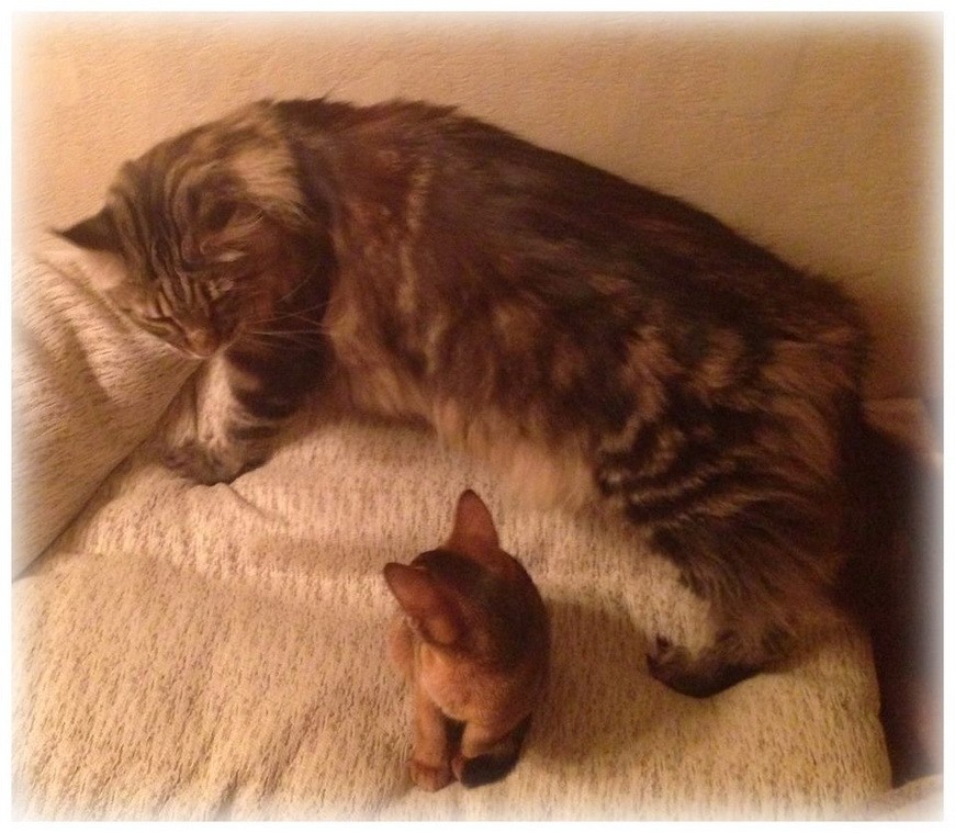 — Муня, — увещевала я старшего кота, — ты уж прости, но так получилось. У тебя теперь есть младший товарищ, будь к нему снисходителен!