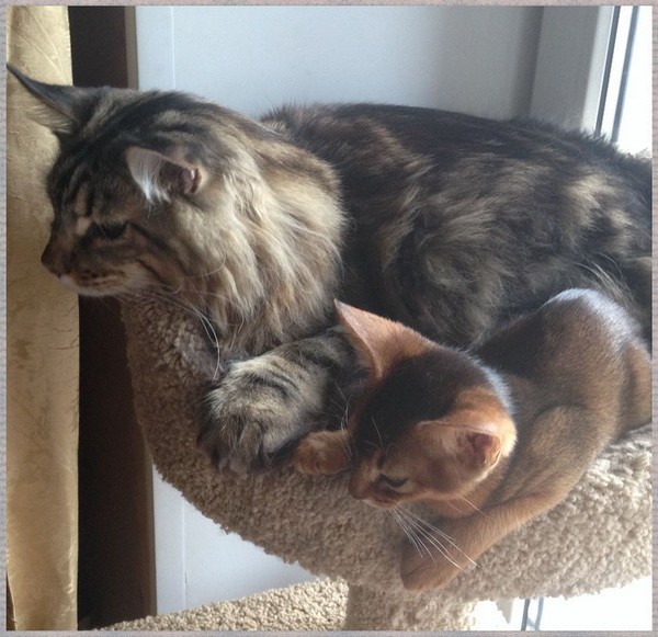 Буся ликовал! Не только на хозяевах лесть и ласка работают, но и на старшем коте.