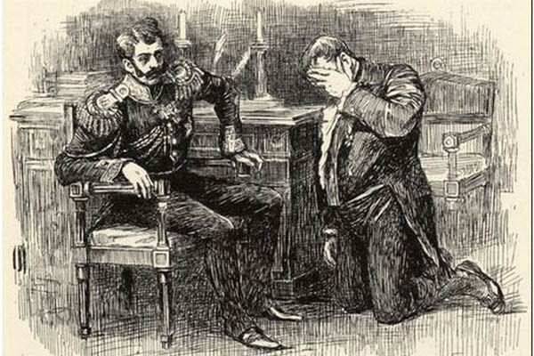 Несколько времени спустя, отворяется дверь князева кабинета, и можно представить себе удивление его, видя доктора Гааза, переступающего с большим трудом и имеющего на шелковом чулке своем огромную кандалу. Князь не мог воздержаться от смеха. «Что с вами случилось, дорогой Гааз, не сошли ли вы с ума?», — вскричал князь, бросив бумагу, которую читал, и вставши со своего места. «Князь, несчастный, за которого я просил вас, убежал, и я пришел занять его место узника! Я виновен более, чем он, и должен быть наказан».