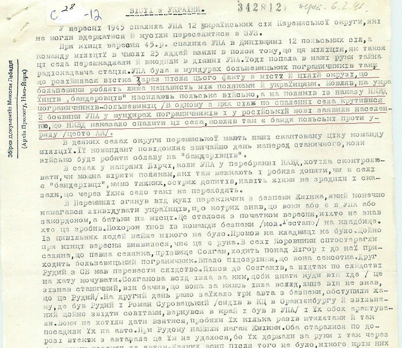 Здесь документально разоблачается миф о переодетых энкаведешниках. Все было, как и свидетельствует бандеровский документ, ровно наоборот. Члены УПА, переодетые в советскую военную или милицейскую форму терроризировали мирное население с целью запугать перед советской властью.