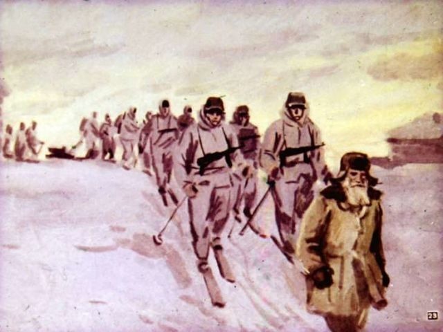 Для рейда в тыл наших войск по дремучим лесам им был нужен проводник из местных, и немцы вновь вспомнили о Матвее Кузьмине. Деда вызвал командир немецкого батальона, и потребовал вывести его отряд к деревне Першино. За эту работу Кузьмичу пообещали денег, муки, керосина, а также роскошное немецкое охотничье ружьё. Старый охотник осмотрел ружьё, оценил «гонорар», и ответил, что согласен стать проводником. Слух о том, что Матвей Кузьмин поведёт фрицев в советский тыл, мигом облетел всю деревню. Односельчане с ненавистью смотрели в его сторону. Но никто из них не знал, что сразу после разговора деда Кузьмича с немецким командиром из деревни в сторону леса выскользнул один из его сыновей, Василий. Он пробрался к нашим, вышел в расположение 31-й стрелковой бригады, и сообщил её комбригу — полковнику Горбунову о планах отца – о том, что он выведет немцев не к Першино, а к другой деревне – к Малкино, где и попросил устроить засаду. В ночь на 14 февраля 42-го года Матвей Кузьмин повёл отборных егерей навстречу их погибели. Они шли всю ночь тропами и окольными дорогами, известными только старому охотнику.