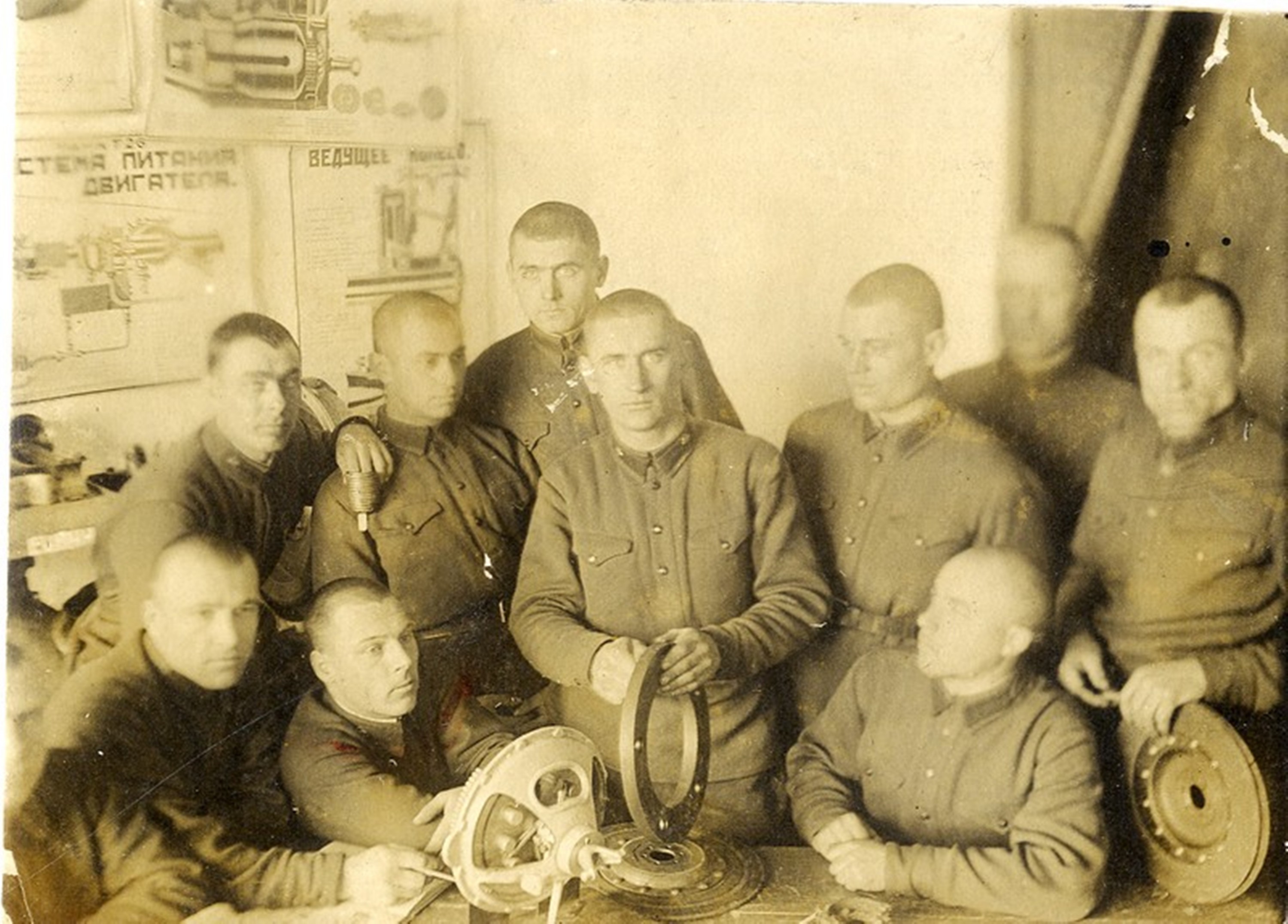 Фото: В техническом классе на самоподготовке курсанты 1-го отделения 1-го взвода 9-ой роты. Л.И. Брежнев крайний слева в верхнем ряду.