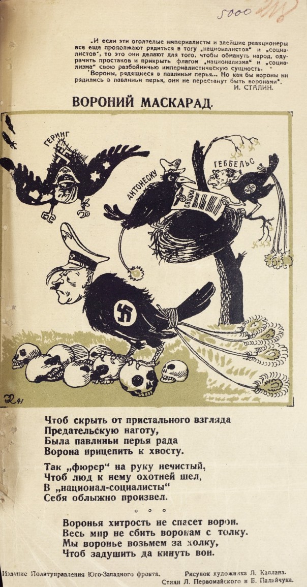 Листовка «Вороний маскарад», выпущенная Политическим управлением Юго-Западного фронта в 1942 году.