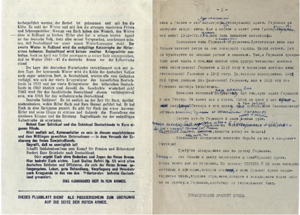 Листовка Главного политического управления РККА с обращением к немецким солдатам