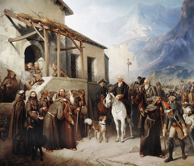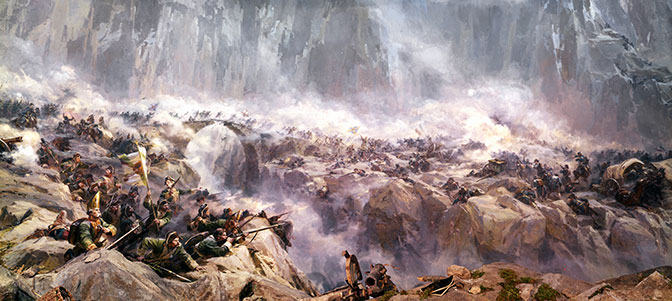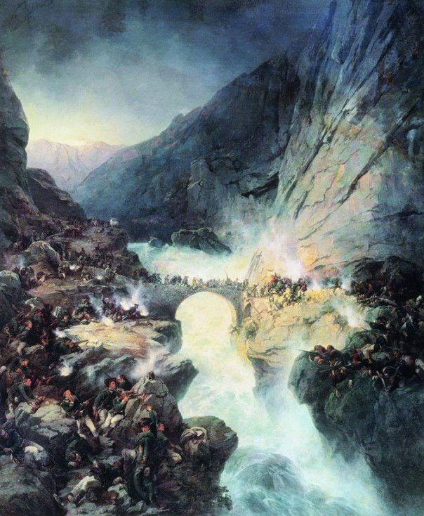 Как бы там ни было, 21 сентября 1799 года русские войска, никогда не воевавшие в горах, начали преодоление альпийских вершин. После штурма перевала Сен-Готард (высота свыше 2 100 м) и взятия с боями Чертова моста (узкая каменная арка над пропастью без перил длиной 25 м и шириной не более четырех метров) замерзшие и голодные войска Суворова прибыли в местечко Альтдорф. И там вдруг выяснилось, что дальше дороги нет. И до сих пор неизвестно: то ли австрийское командование не знало об этом, то ли попросту «забыло» проинформировать русских.