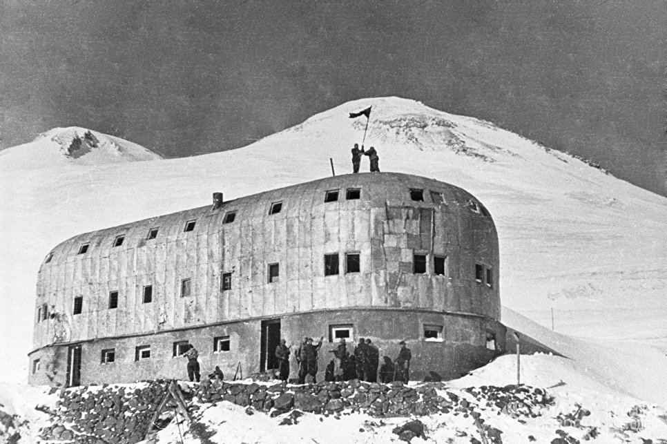 А в середине февраля 1943 года, несмотря на тяжелейшие погодные условия, специальная штурмовая группа военных альпинистов во главе с Александром Гусевым поднялась на обледенелые вершины Эльбруса и сбросила германские флаги, установив на их место знамена Советского Союза.