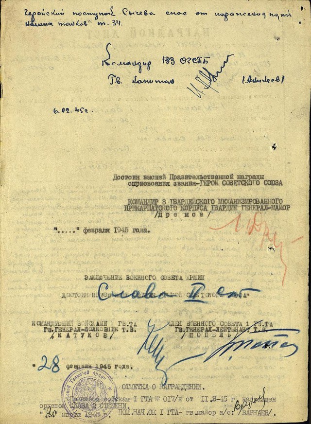 Предлагаю вашему вниманию отрывок из книги Н. К. Попеля "Впереди - Берлин!" (М.; СПб., 2001. С. 269.), посвящённый подвигу сапёра Сычёва.