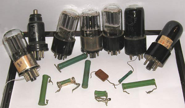 Детали Малой электронной счетной машины МЭСМ: электронные лампы, сопротивления, конденсаторыДетали Малой электронной счетной машины МЭСМ: электронные лампы, сопротивления, конденсаторы