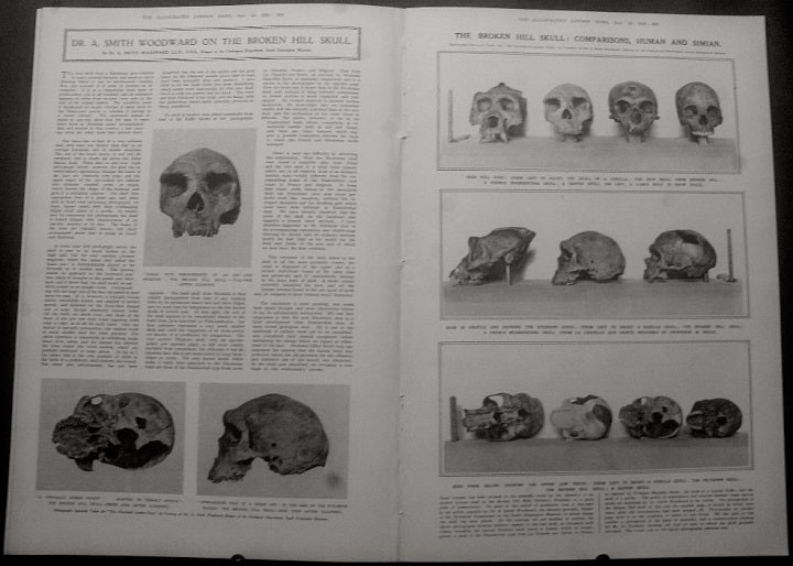 А вот еженедельник The Illustrated London News через два дня представил большую (на 7 листов) иллюстрированную (как это обещает название газеты) статью о родезийском человеке под названием «Самая важная находка в антропологии со времён черепа из Пилтдауна». Статья сопровождалась фотографией самого черепа, только что извлеченного из земли, фотографиями ряда черепов, где родезиец красовался между гориллой и неандертальцем из Ля-Шапель-о-Сен.