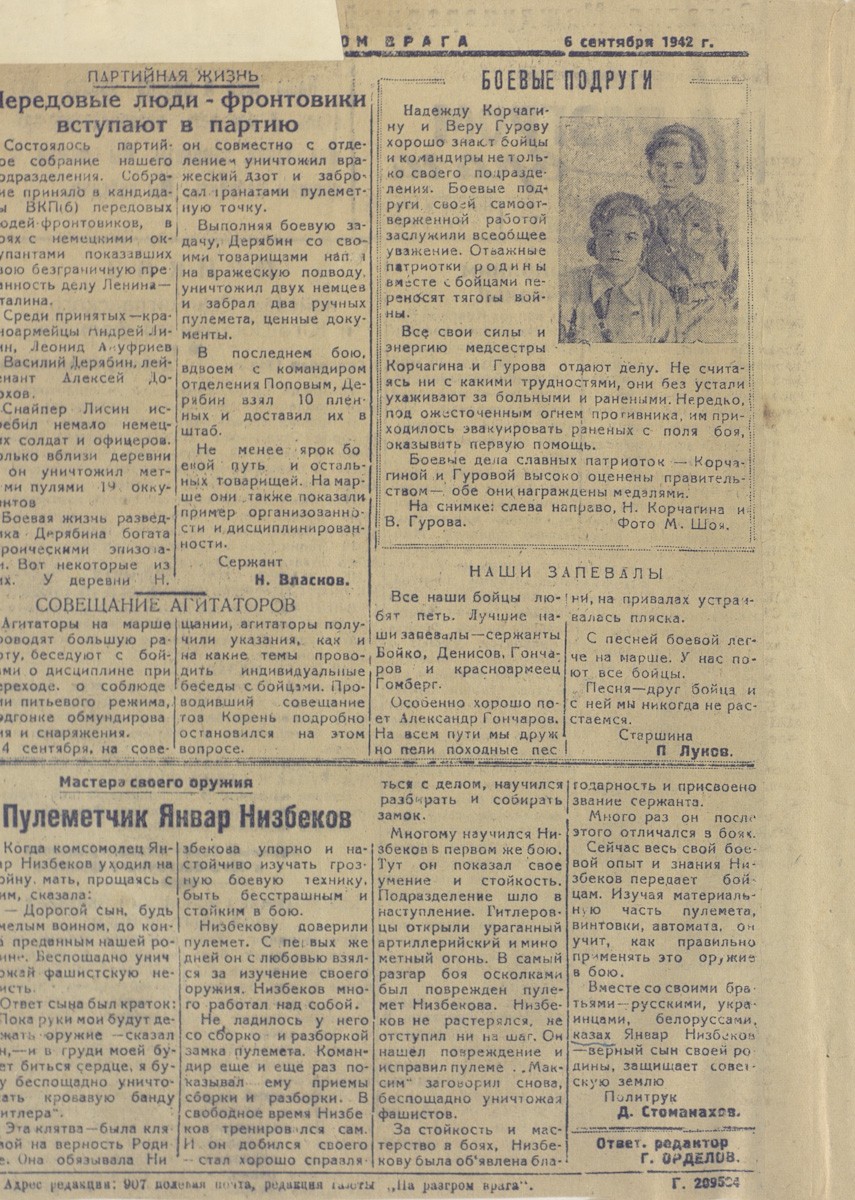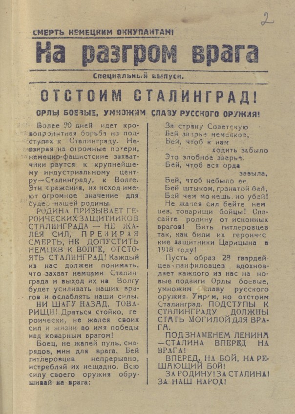 Фронтовая газета 13 гвардейской стрелковой дивизии «На разгром врага»