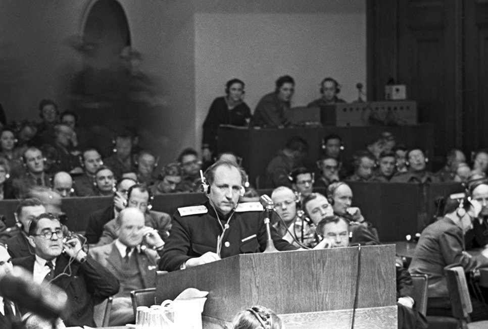 Главный обвинитель от СССР генерал-лейтенант Роман Андреевич Руденко во время выступления на Нюрнбергском процессе