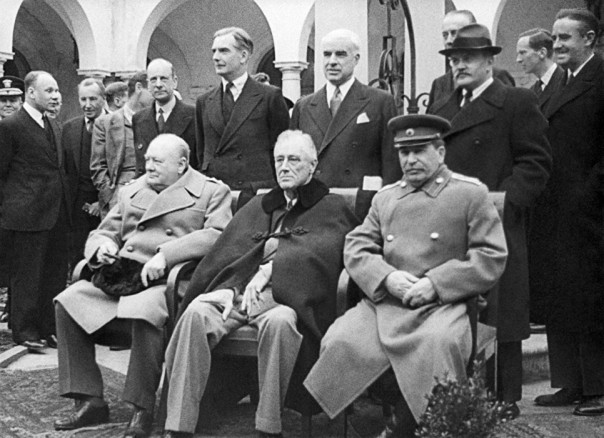 И. Сталин, Ф. Рузвельт и У. Черчилль на Крымской конференции в Ялте