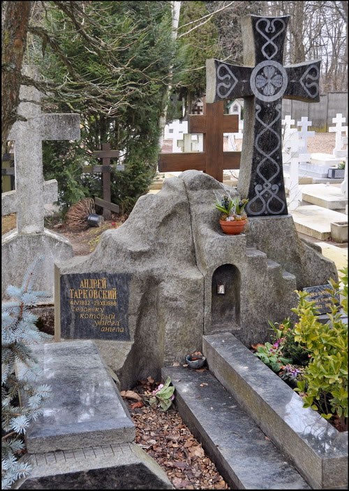 Памятник на могиле А.Тарковского создан известным скульптором Эрнстом Неизвестным. Он символизирует Голгофу, а выбитые в мраморе семь ступенек - это семь фильмов Тарковского. Православный крест изготовлен по эскизам самого режиссера.