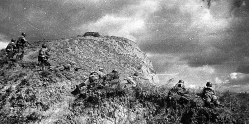Советские солдаты атакуют противника на Зееловских высотах