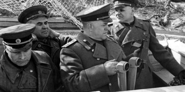 Командующий 1-м Белорусским фронтом Маршал Георгий Жуков на командном пункте