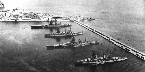Четыре лучших французских линкора (новые «Дюнкерк» и «Страсбург» и — лучшие из старых — «Бретань» и «Прованс») стояли в гавани алжирской базы Мерс-эль-Кебир. Откуда рукой подать до Тулона или до итальянских портов. Это крайне тревожило Лондон.